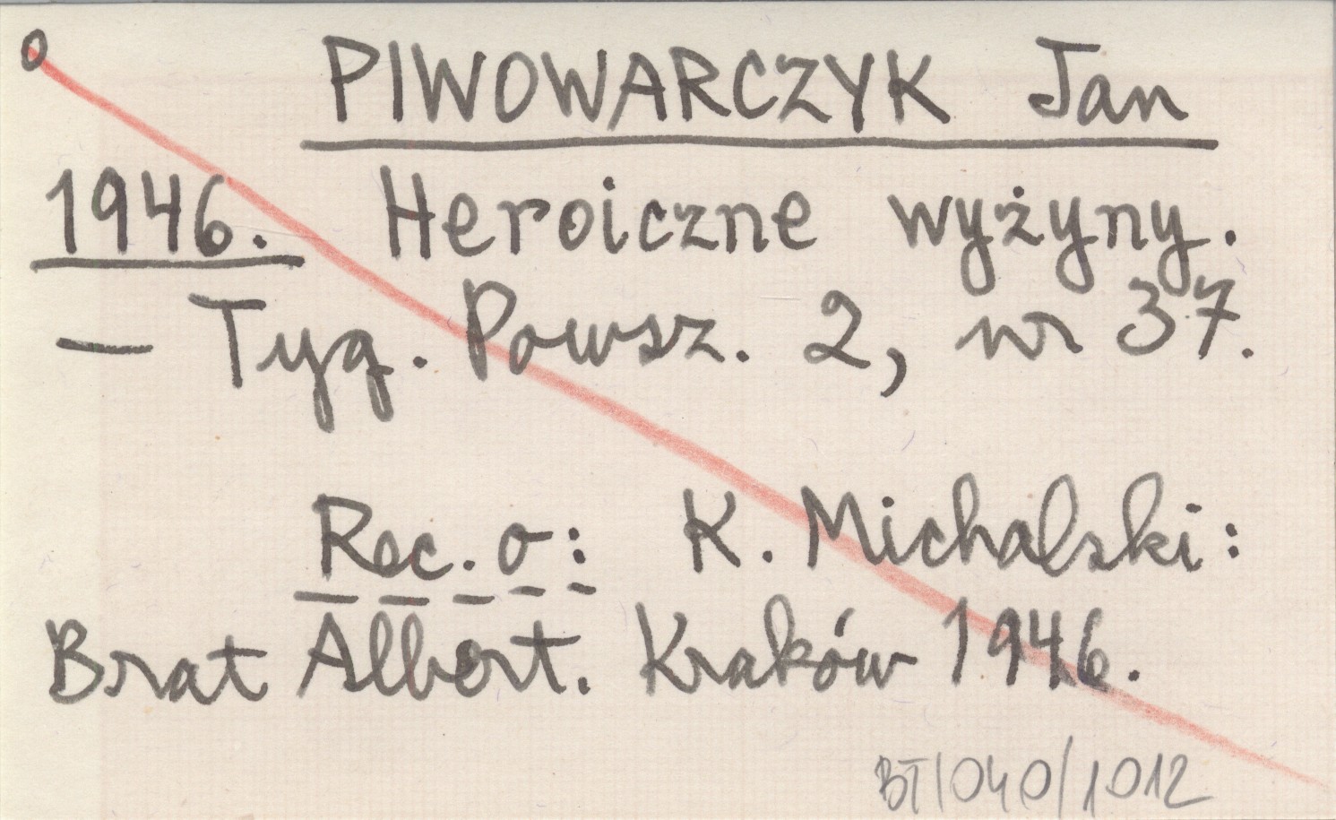 Tygodnik Powszechny, 2, nr 37. Recenzja o: K. Michalski: Brat Albert, Kraków 1946.