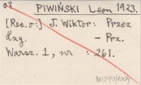 PIWIŃSKI Leon 1923 [Rec. o:] J. Wiktor: Przez łzy.