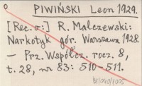 PIWIŃSKI Leon 1929 [Rec. o:] R. Malczewski: Narkotyk gór. Warszawa 1928.