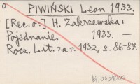 PIWIŃSKI Leon 1933 [Rec. o:] H. Zakrzewska: Pojednanie. 1933.