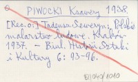 PIWOCKI Ksawery 1938 [Rec. o:] Tadeusz Seweryn: Polskie malarstwo ludowe. Kraków 1937.