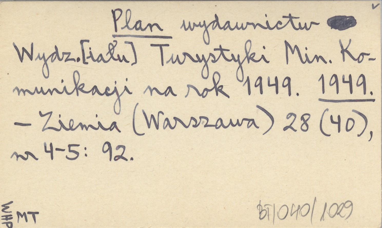 Plan wydawnictw Wydz.[iału] Turystyki Min. Komunikacji na rok 1949. 1949