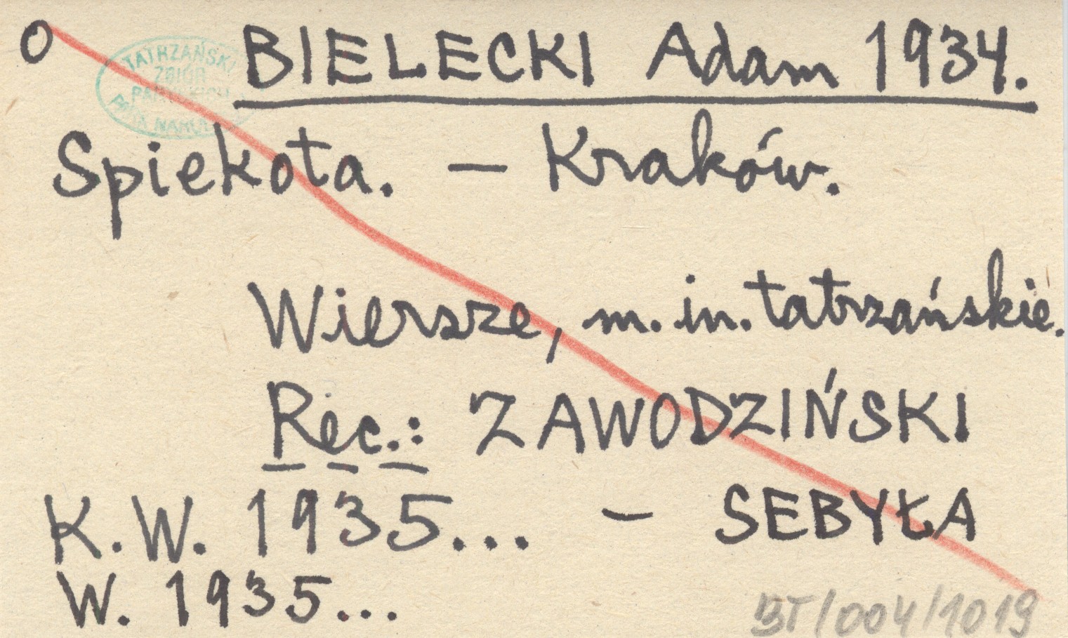 Kraków , Wiersze, m.in. tatrzańskie. REC: ZAWODZIŃSKI K. W. 1935... ; SEBYŁA W. 1935... ;