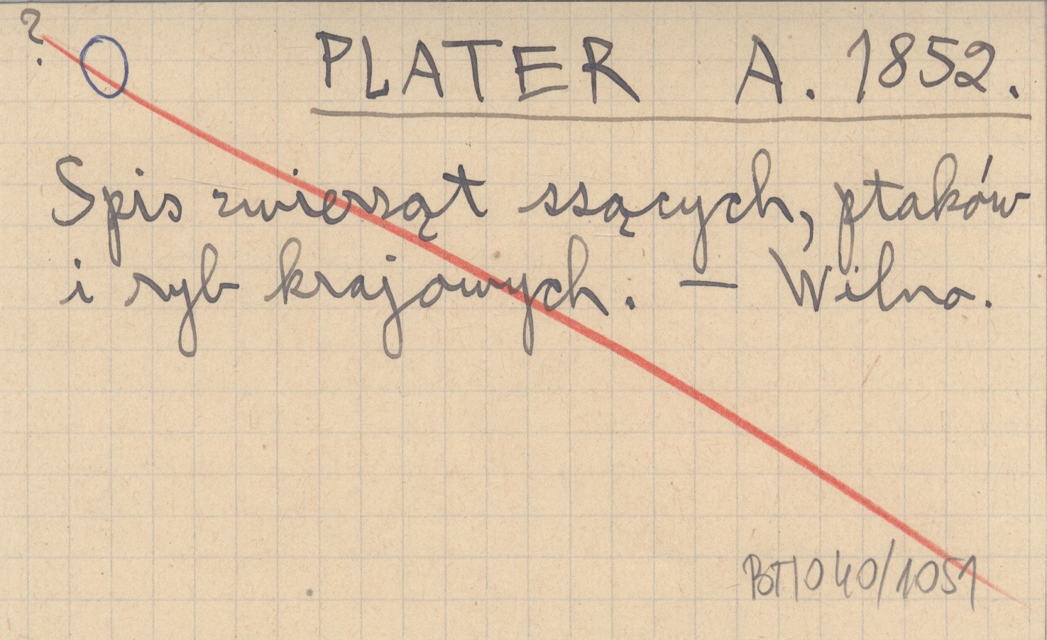 PLATER A. 1852 Spis zwierząt ssących, ptaków i ryb krajowych.