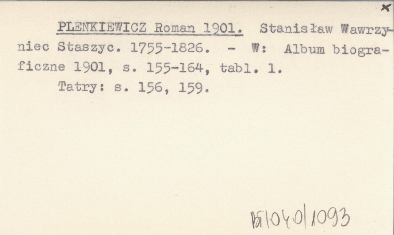PLENKIEWICZ Roman 1901 Stanisław Wawrzyniec Staszyc. 1755-1826.