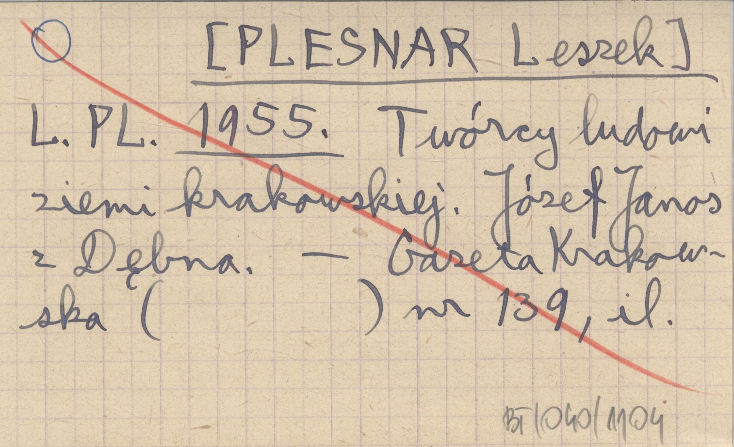 L. PL. [PLESNAR Leszek] 1955 Twórcy ludowi ziemi krakowskiej. Józef Janos z Dębna.