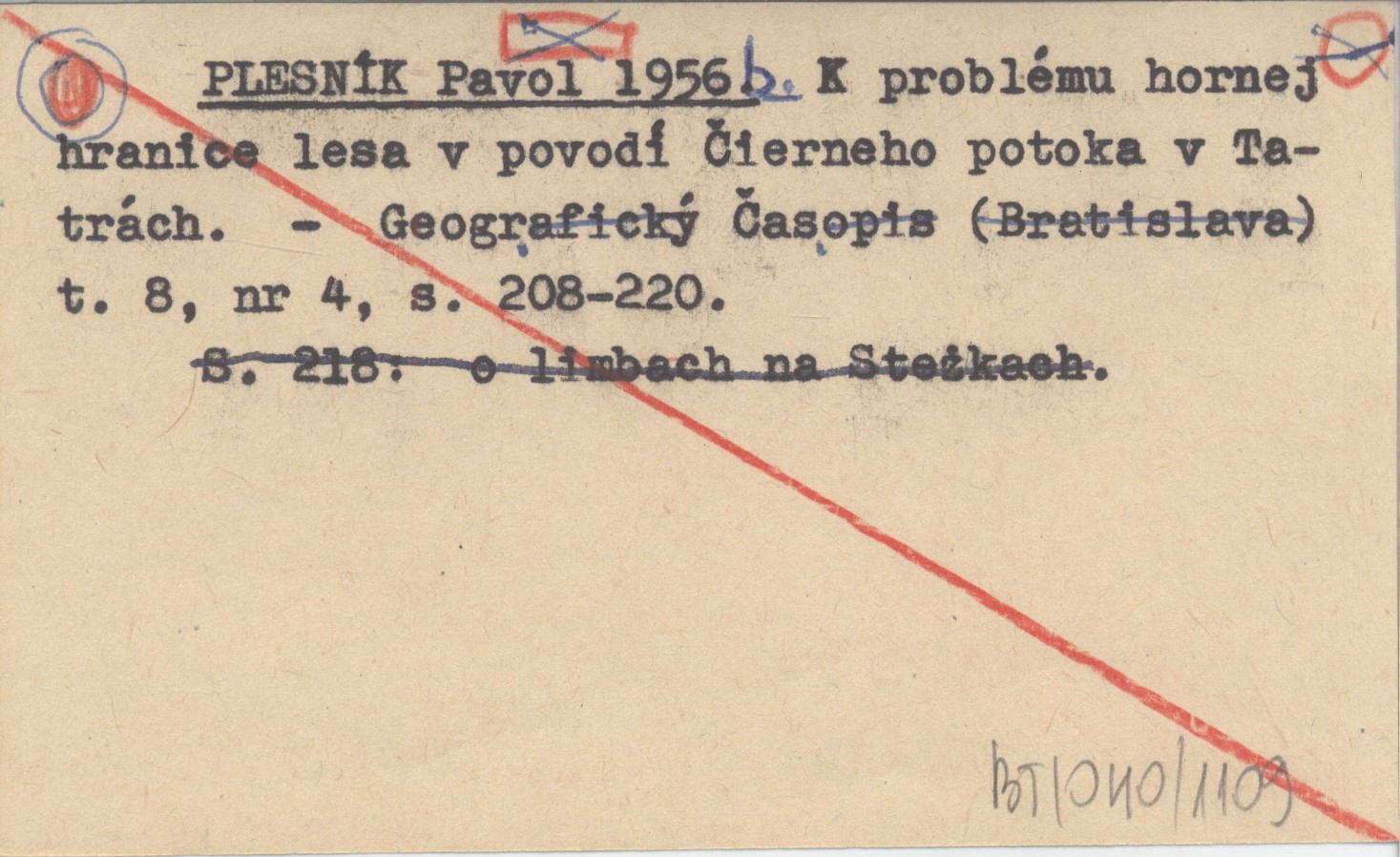 PLESNÍK Pavol 1956 b K problému hornej hranice lesa v povodí Čierneho potoka v Tatrách.