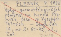PLESNÍK P. 1967 Vplyv geomorfologických pomerov na hornú hranicu lesa vo Vysokých Tatrách.