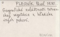 PLESNÍK Pavol 1970... Geografické zvláątnosti tatranskej vegetácie z hµadiska iných pohorí.