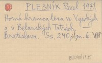 PLESNÍK Pavol 1971 Horná hranica lesa vo Vysokých a v Belanských Tatrách.
