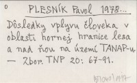 PLESNÍK Pavol 1978... Dôsledky vplyvu človeka v oblasti hornej hranice lesa a nad ňou na území TANAP-u.