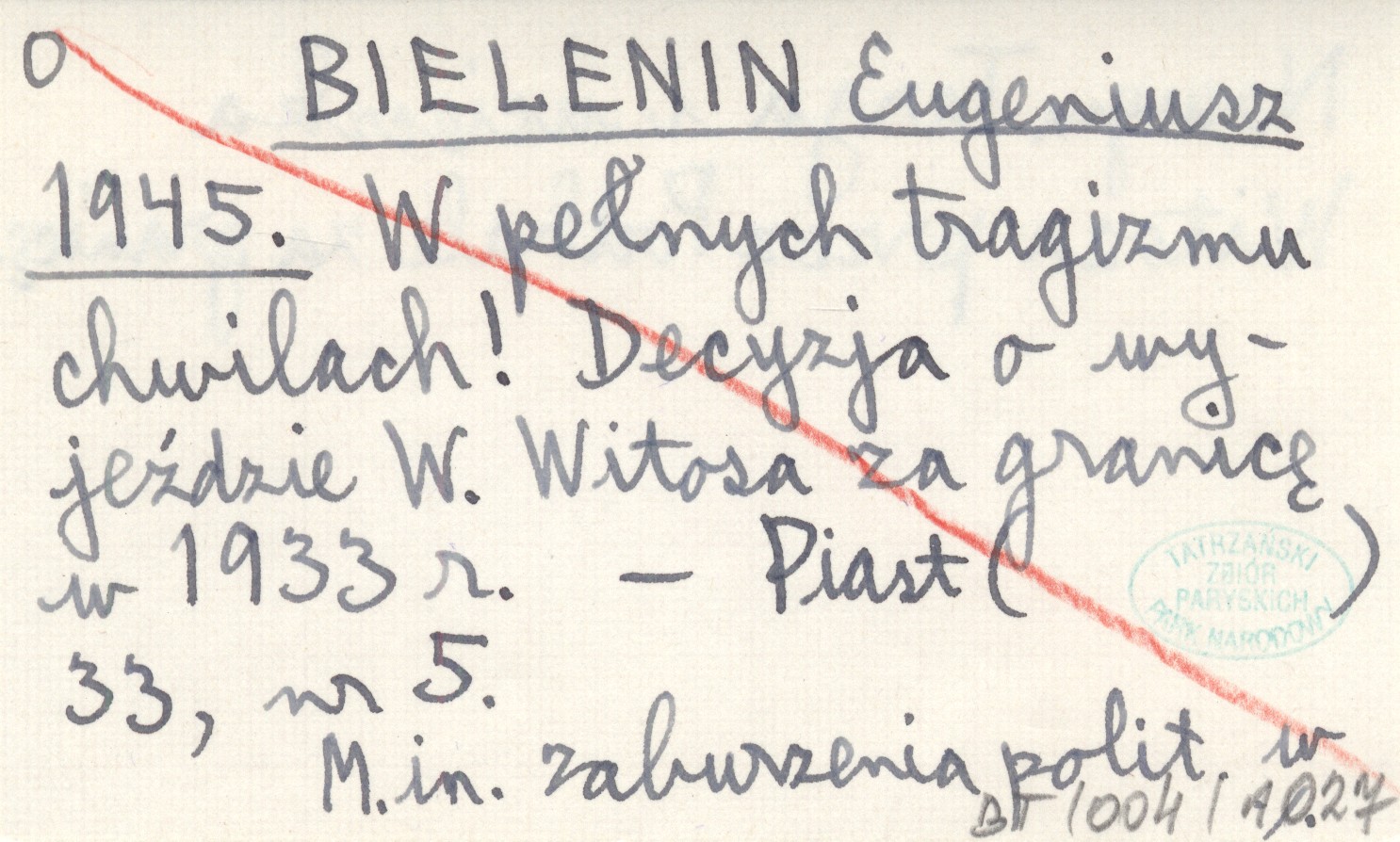 BIELENIN Eugeniusz 1945 W pełnych tragizmu chwilach! Decyzja o wyjeździe W. Witosa za granicę w 1933 r.