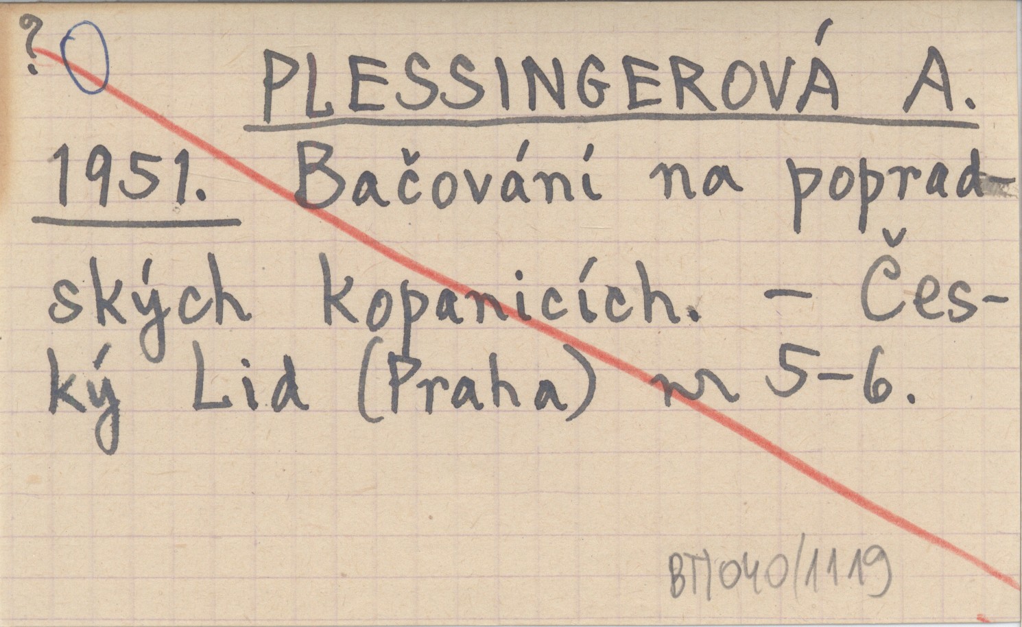 PLESSINGEROVÁ A. 1951 Baèování na popradskęch kopanicích.