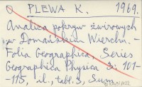 PLEWA K. 1969 Analiza pokryw żwirowych w Domańskim Wierchu.