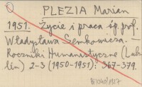 PLEZIA Marian 1951 Życie i praca ¶p. prof. Władysława Semkowicza.