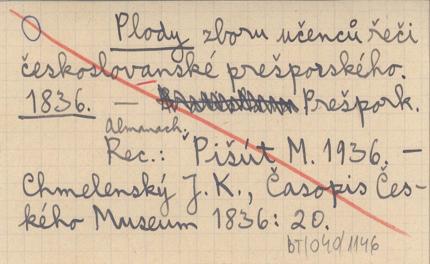 REC: PI©ÚT M. 1936 ; CHMELENSKÝ J. K., Èasopis Èeského Museum 1836: 20 ;