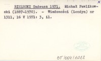 BIELECKI Tadeusz 1971 Michał Pawlikowski (1887-1970).