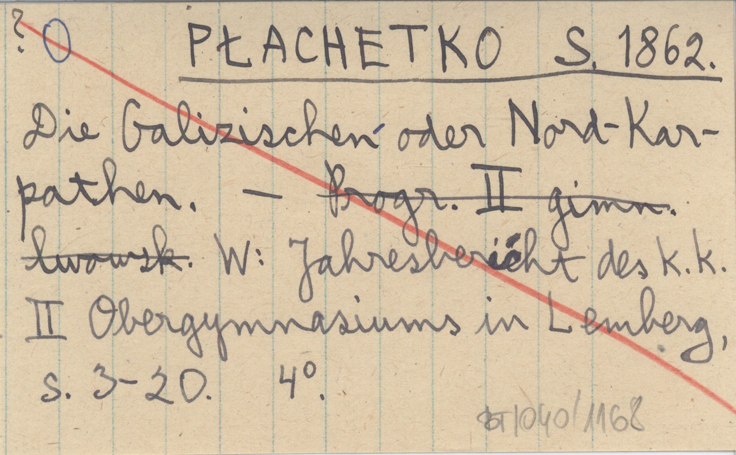 PŁACHETKO S. 1862 Die Galizischen oder Nord-Karpathen.