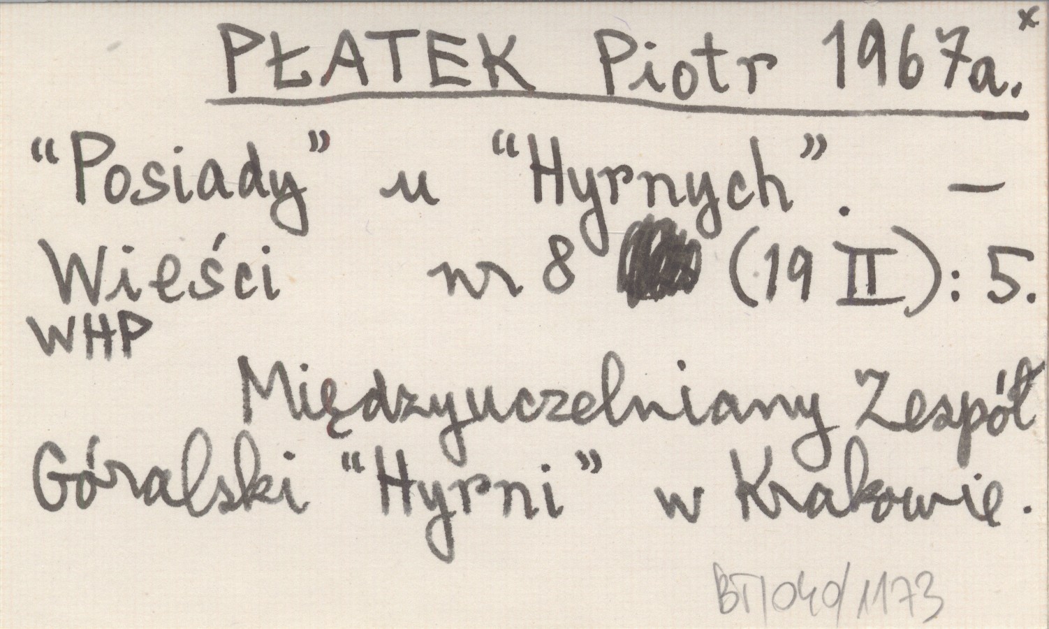 Wieści, Nr 8 (19 II): 5. Międzyuczelniany Zespół Góralski "Hyrni" w Krakowie.