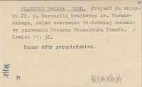 PŁAWICKI Feliks 1888 Projekt do wniosku JE. p. Marszałka krajowego hr. Tarnowskiego, celem uczczenia 40-letniej rocznicy panowania Cesarza Franciszka Józefa.
