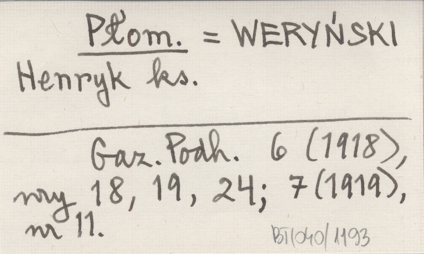 Płom. WERYŃSKI Henryk ks. Gazeta Podhalańska 6 (1918), nr 18, 19, 24 ; 7 (1919), nr 11.
