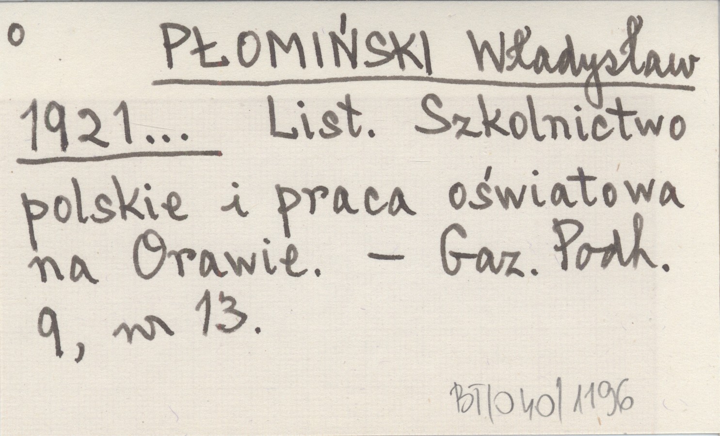 PŁOMIŃSKI Władysław 1921... List. Szkolnictwo polskie i praca oświatowa na Orawie.