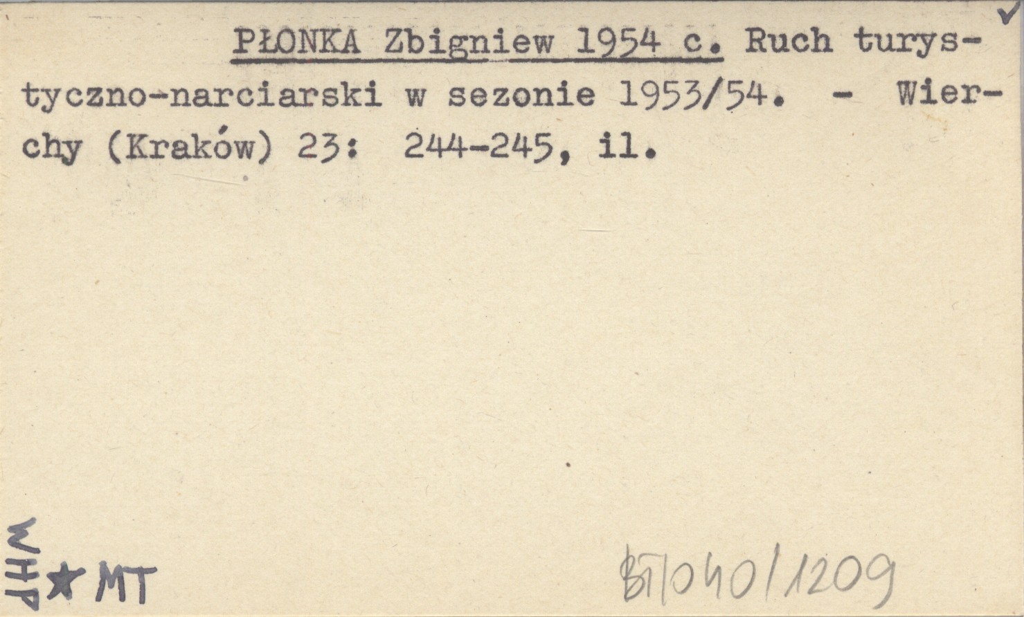 PŁONKA Zbigniew 1954 c Ruch turystyczno-narciarski w sezonie 1953/54.