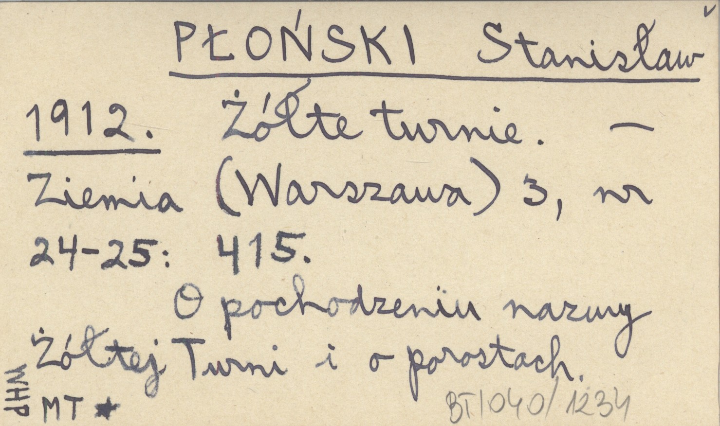 Ziemia (Warszawa) , 3, nr 24-25: 415. O pochodzeniu nazwy Żółtej Turni i o porostach.