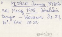 PŁOŃSKI Janusz RYBIŃSKI, Maciej. ; 1978 Góralskie tango.