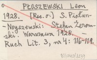 PŁOSZEWSKI Leon 1928 [Rec. o:] S. Piołun-Noyszewski: Stefan Żeromski. Warszawa 1928.