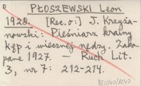 PŁOSZEWSKI Leon 1928 [Rec. o:] J. Krzyżanowski: Pieśniarz krainy kęp i wiecznej nędzy. Zakopane 1927.