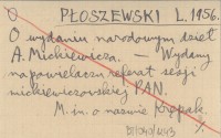 PŁOSZEWSKI L. 1956 O wydaniu narodowym dzieł A. Mickiewicza.