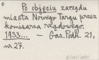 Po objęciu zarządu miasta Nowego Targu przez komisarza rządowego. 1933...