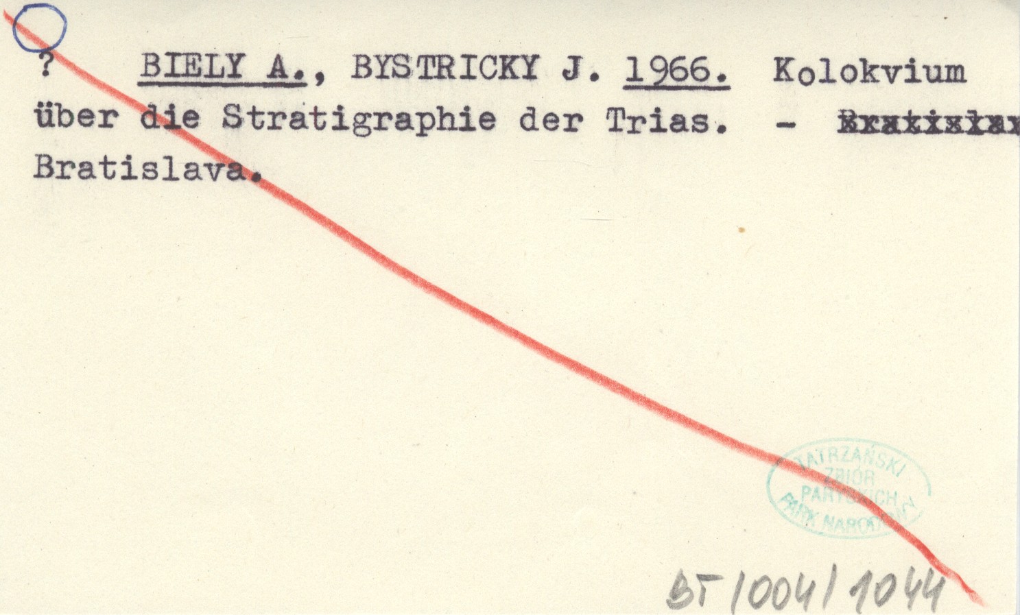 BIELY A. BYSTRICKY, J. ; 1966 Kolokvium über die Stratigraphie der Trias.