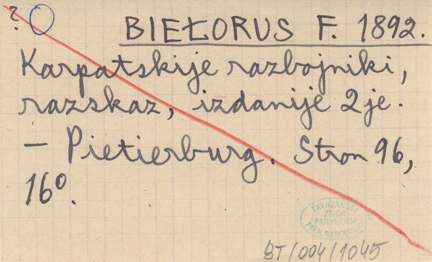BIEŁORUS F. 1892 Karpatskije razbojniki, razskaz, izdanije 2 je.