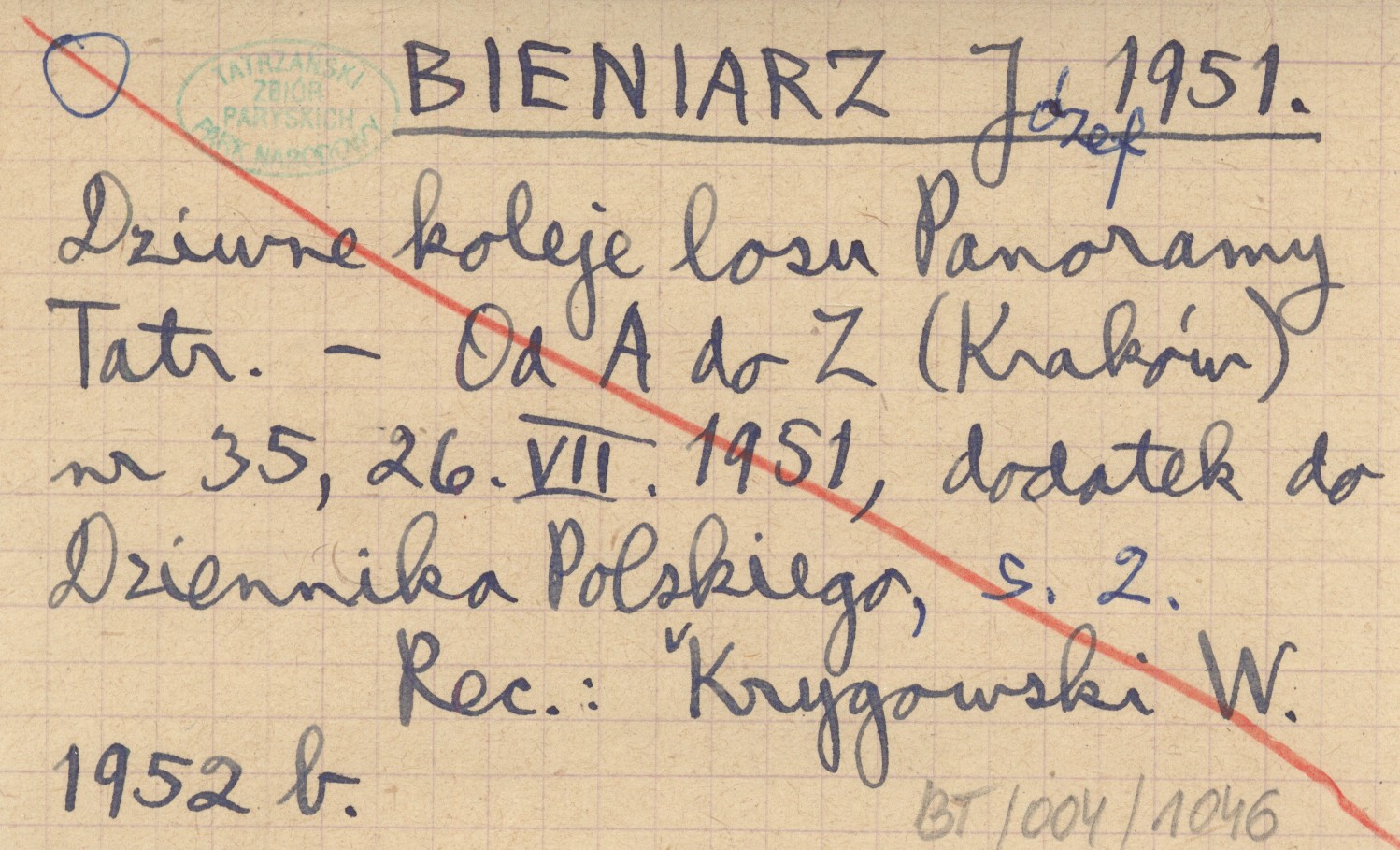 BIENIARZ Józef 1951 Dziwne koleje losu Panoramy Tatr.