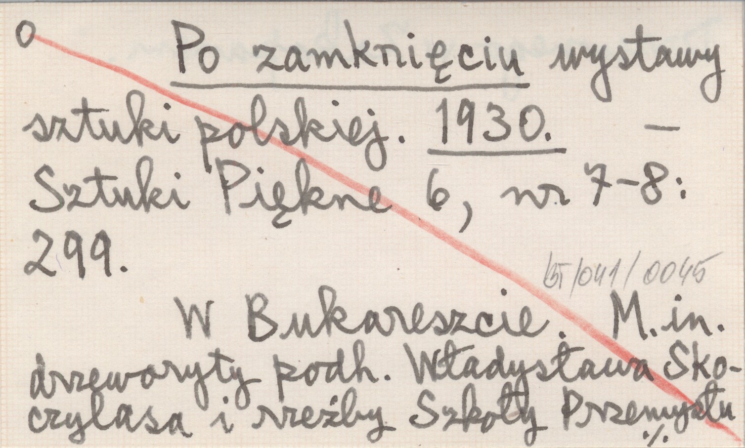 Sztuki Piękne, 6, nr 7-8: 299. W Bukareszcie. M. in. drzeworyty podhalańskie Władysława Skoczylasa i rzeźby Szkoły Przemysłu Drzewnego w Zakopanem.