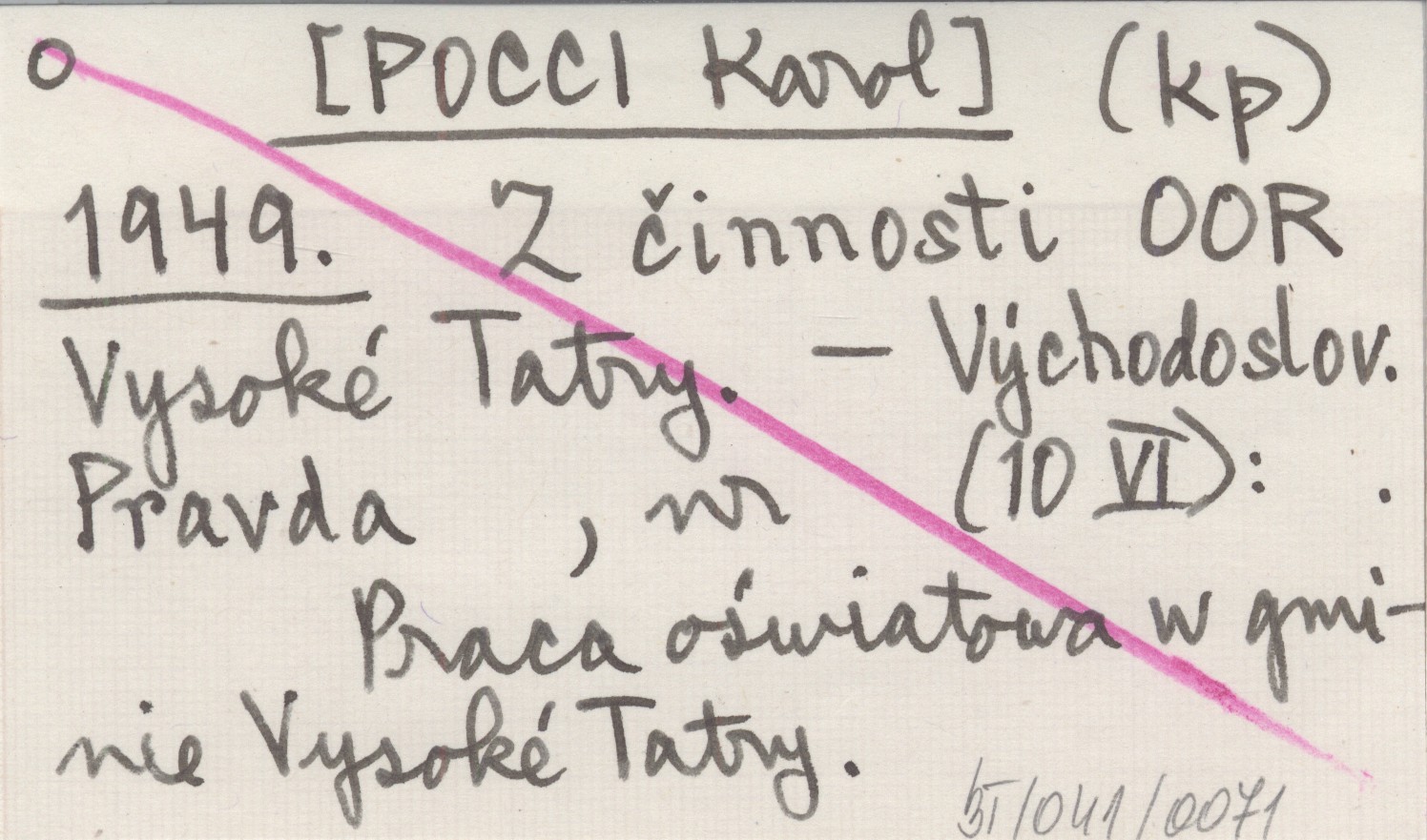 (kp) [POCCI Karol] 1949 Z činnosti OOR Vysoké Tatry.