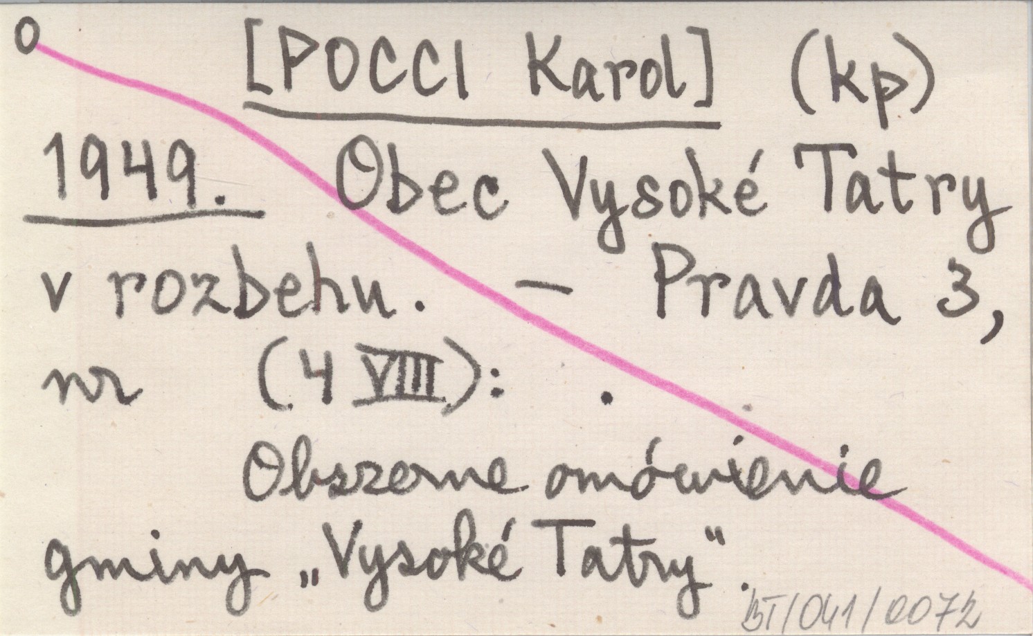 (kp) [POCCI Karol] 1949 Obec Vysoké Tatry v rozbehu.