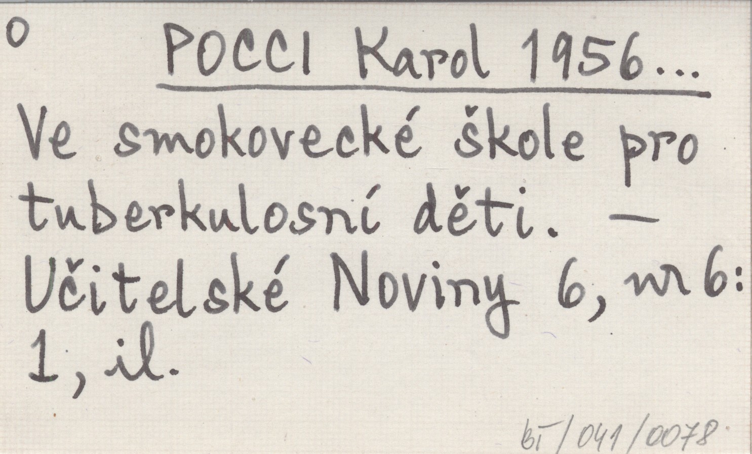 POCCI Karol 1956... Ve smokovecké škole pro tuberkulosní děti.