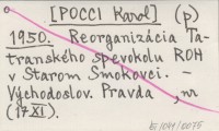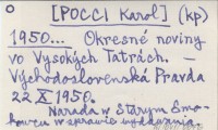 (kp) [POCCI Karol] 1950... Okresné noviny vo Vysokých Tatrách.