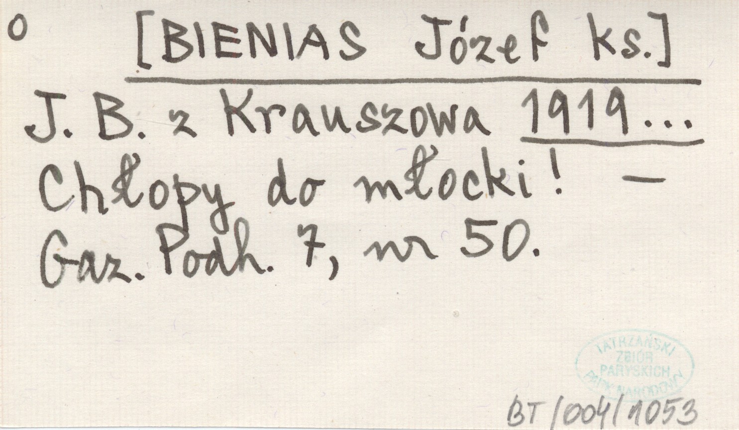 J. B. z Krauszowa [BIENIAS Józef ks.] 1919... Chłopy do młocki!