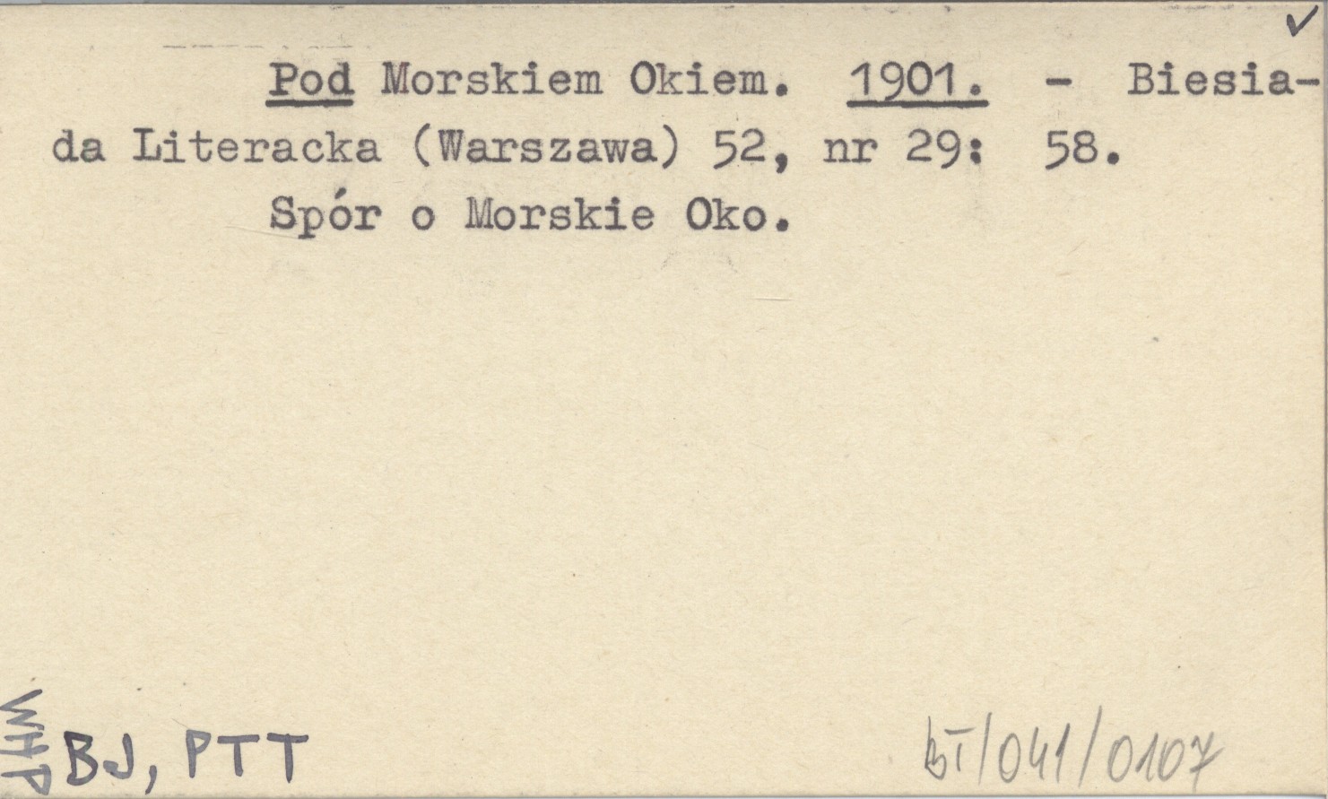Biesiada Literacka (Warszawa) , 52, nr 29: 58. Spór o Morskie Oko.