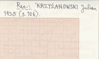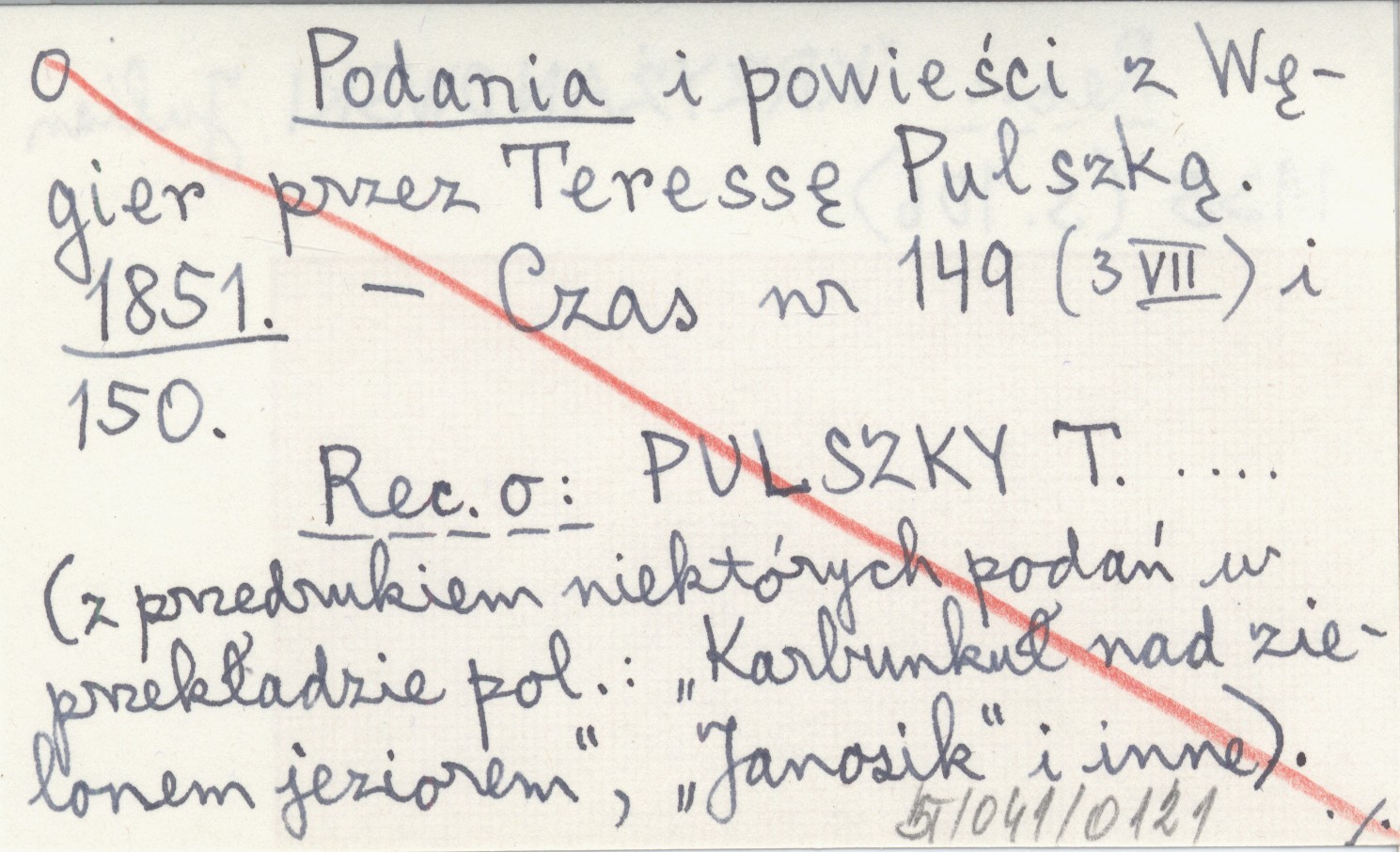 Czas, Nr 149 (3 VII), 150. Recenzja o: PULSZKY T. ... (z przedrukiem niektórych podań w przekładzie polskim: "Karbunkuł nad zielonem jeziorem", "Janosik" i inne). REC: KRZYŻANOWSKI Julian 1935: 106.