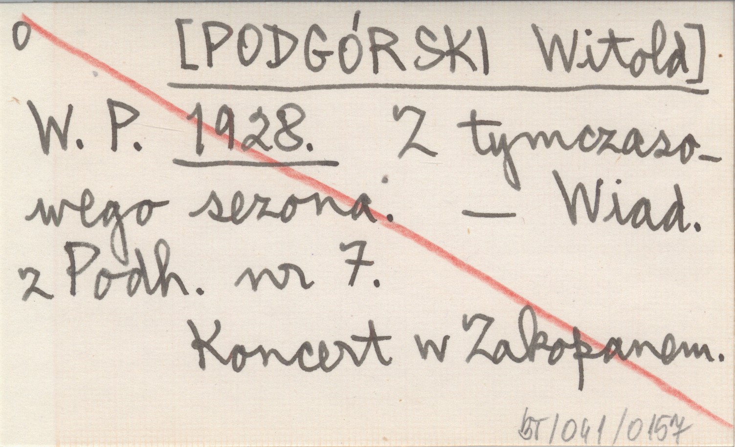 W. P. [PODGÓRSKI Witold] 1928 Z tymczasowego sezona.