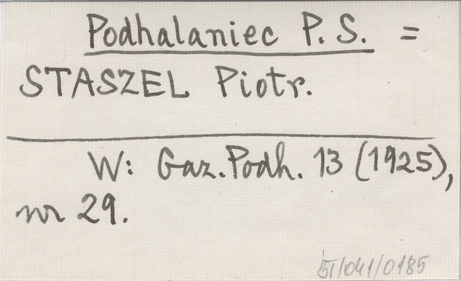 Podhalaniec P. S. STASZEL Piotr Gazeta Podhalańska 13 (1925), nr 29.
