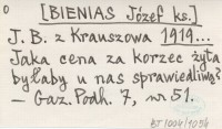 J. B. z Krauszowa [BIENIAS Józef ks.] 1919... Jaka cena za korzec żyta byłaby u nas sprawiedliwą?