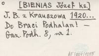 J. B. z Krauszowa [BIENIAS Józef ks.] 1920... Do Braci Podhalan!