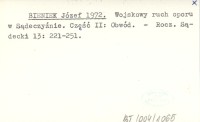 BIENIEK Józef 1972 Wojskowy ruch oporu w Sądeczyźnie. Część II: Obwód.