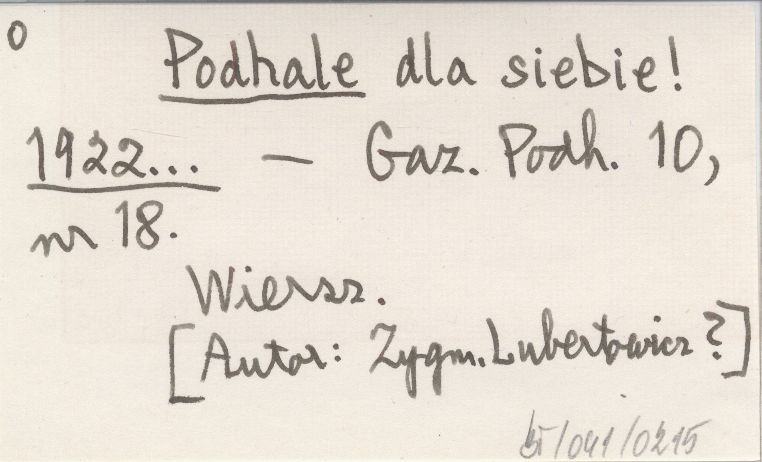 Gazeta Podhalańska, 10, nr 18. Wiersz. [Autor: Zygmunt Lubertowicz?]